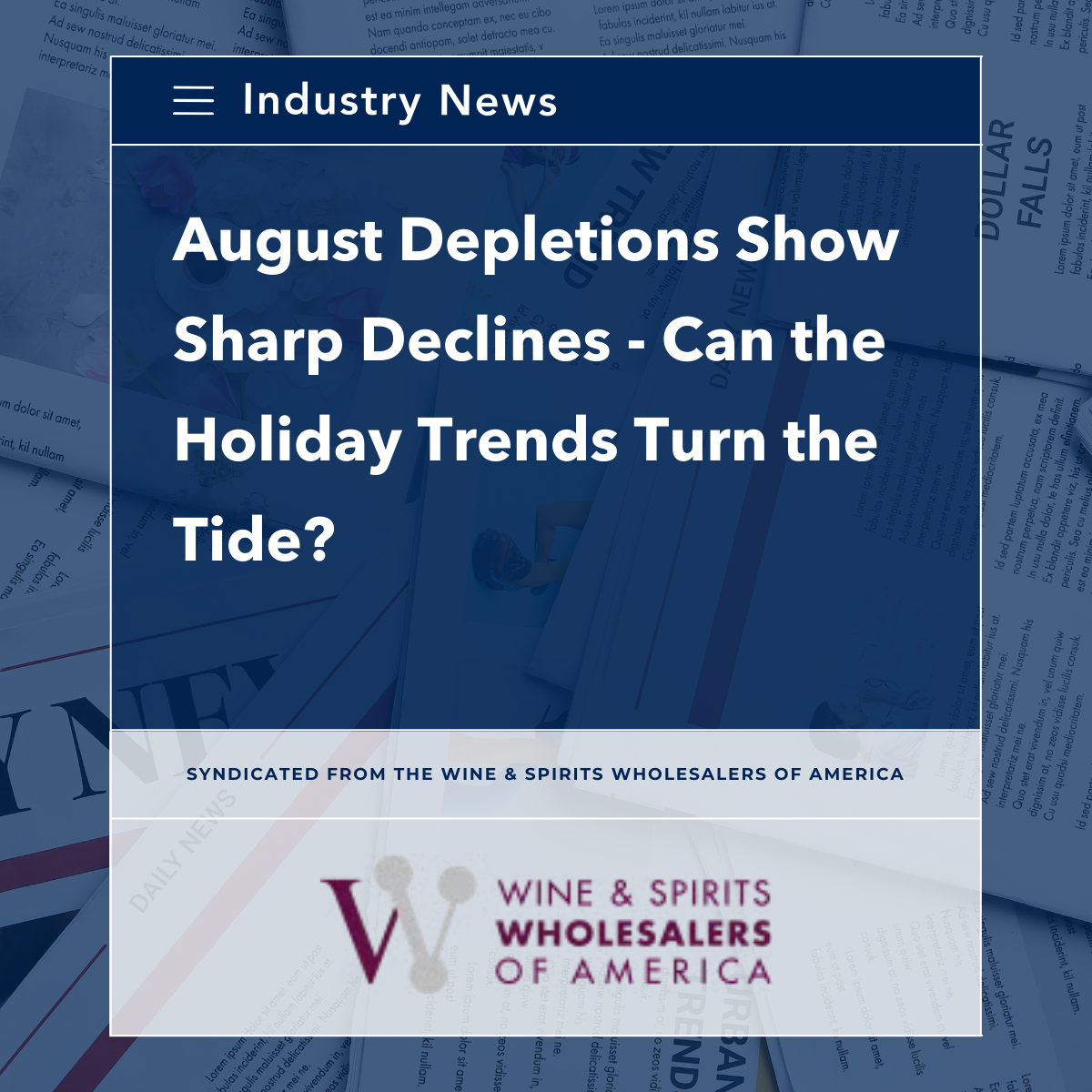 Looking ahead, industry focus is shifting toward the critical holiday season and the associated four-month comparison period. Historically, September through December represents a make-or-break stretch for the industry. Last year, spirits depletions were down -2.0% in volume and -2.5% in revenue during this window, while wine saw sharper losses of -6.0% in volume and -4.9% in revenue.