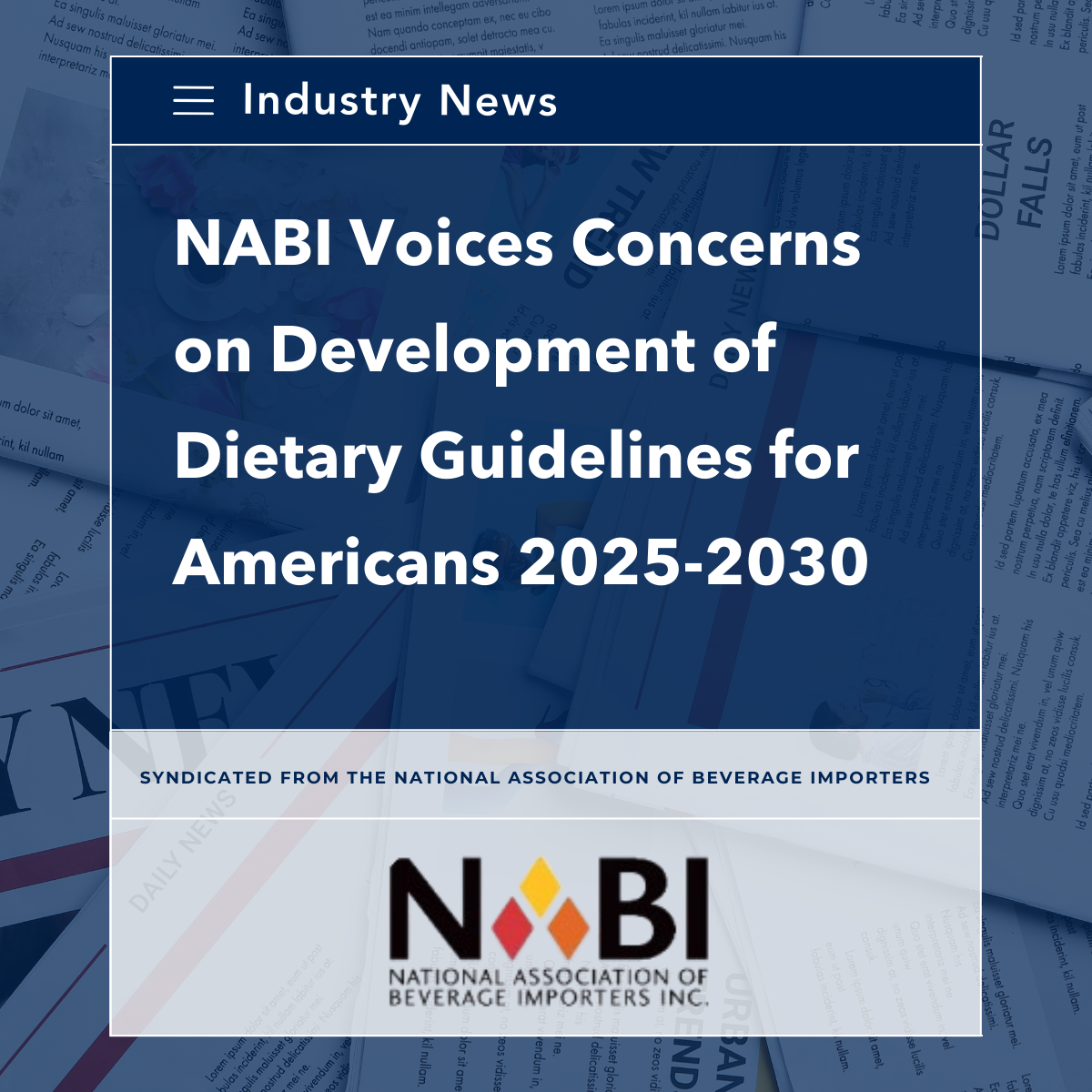 In a comment letter, NABI told the Interagency Coordination Committee on the Prevention of Underage Drinking (ICCPUD) that its process for developing a scientific report as part of the development on the alcohol beverage consumption guidance lacked clarity, appeared outside the original remit of the ICCPUD, and needed to be aware of the potential adverse reaction to any significant alteration in more than 40 year consistent guidance on moderate consumption of beverage alcohol, for those who decide to drink, in the upcoming edition of the Dietary Guidelines for Americans 2025-2030 (DGA).